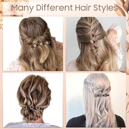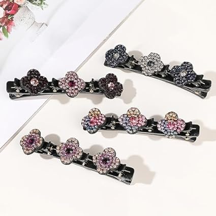 - 【Braided Hair Clips for Women】The sparkling crystal stone braided hair clips are uniquely designed to be double layers with 3 small clips. Each set of hairpins is matched with 4 rhinestones of different colors and styles. Let you have more choices to match different clothes and styles. You don’t need to spend a lot of time doing your hair, and you can become the highlight of the crowd with duckbill hair clips.