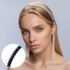 - Self-adhesive Design: There is a layer of glue attached to the back of the headband teeth strip. You just need to tear off the outside protective paper and stick it to the the back of any hairbands.