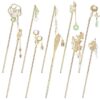 - Exquisite Metal Hair Sticks with Vintage Charm: Crafted from high-quality metal, these gold hair sticks exude an elegant and retro atmosphere. Adorned with delicate pendants like pearls and plastic jewelries, each hair stick showcases intricate designs inspired by Chinese culture. The vintage patterns, including flowers, butterflies, and bamboo, make these hairpins a captivating accessory to elevate any hairstyle.
