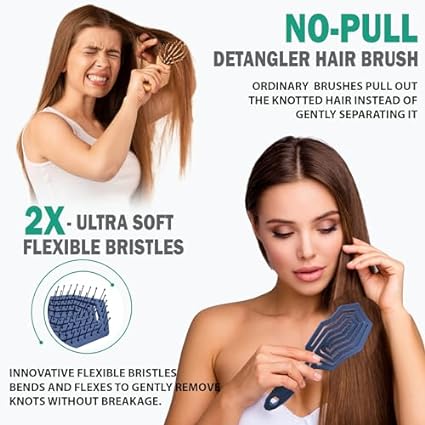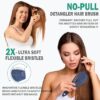 • No Pull- Detangling Brush – Ordinary bristle brushes pull out the knotted hair instead of gently separating it. Our innovative flexible bristle brush bends and flexes to gently remove knots without breakage. Anti-static Nylon bristles distribute the scalp’s own natural oils for silky, shiny healthy-looking results