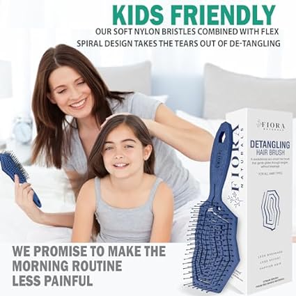 • Kids Friendly Detangler Brush – For parents with little girls and toddlers, we promise to make the morning routine less painful. Our soft nylon bristles combined with flex spiral design takes the tears out of de-tangling