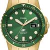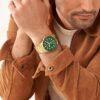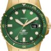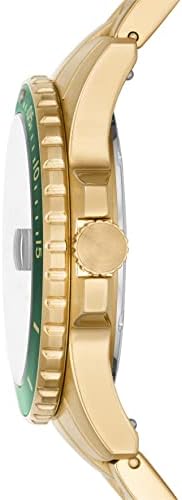 - Gold-tone stainless steel case with green sunray dial; gold-tone stainless steel bracelet band; links can be removed for a customized fit; interchangeable with all 22mm Fossil straps