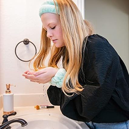 Stretch elastic skincare headband keeps hair and liquids from running down your face; Reusable and machine washable