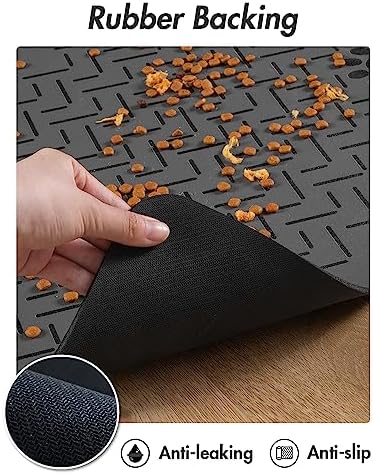 - Anti-Leakage & Anti-Slip: The 100% non-slip rubber backing keeps the dog placemat in place no matter how your pet pushes on it. The waterproof rubber bottom prevents water from penetrating the floor. Pet bowl mats for food and water will not cause the floor to be corroded and reduce the abrasion to the floor.