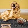 - Durable & Absorbent: Perfect pet supplies.This pet food mat can prevent liquid from overflowing. Super absorbent and quick-drying ability to avoid wetting pet paws even for messy drinkers. Sturdy dog & cat food bowl mat cannot be torn easily and avoid eating by mistake. Keep the pet’s eating environment tidy and clean.