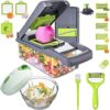 • 🥒【Save Time】🥒This veggie chopper slicer is a practical kitchen tool. Usually, it takes a lot of time to cut food into small pieces and thin slices. With this vegetable slicer, this process can be reduced. Time-consuming, a vegetable chopper can cut your prep time down to minutes. This lifestyle has brought us into the era of fast food…