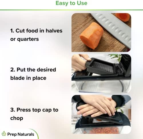 High-Quality Stainless Steel Blades – Our essential salad chopper includes our 2 most popular blades so you can tackle any dish. Made of 301EH stainless steel, this food dicer’s blades will last for ages without losing its sharp edge.