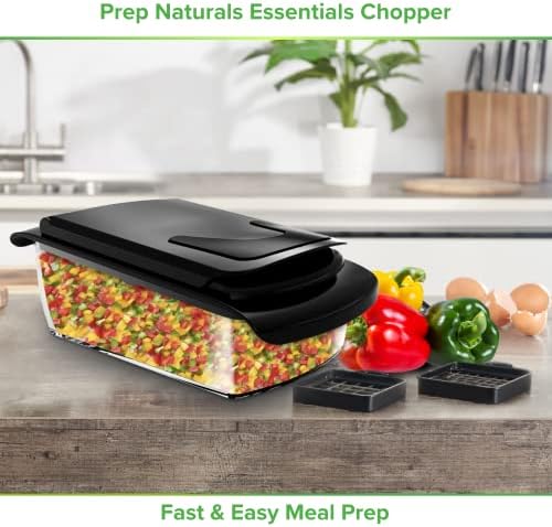 2 Interchangeable Blades – This essential vegetables chopper includes a fine dicer and a medium dicer to effortlessly chop your veggies big or small. Prepare any meal without the mess of a knife and a board… or million unused accessories!