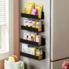 - Package including 4 pieces metal black magnetical shelves(2 large,2 Medium)